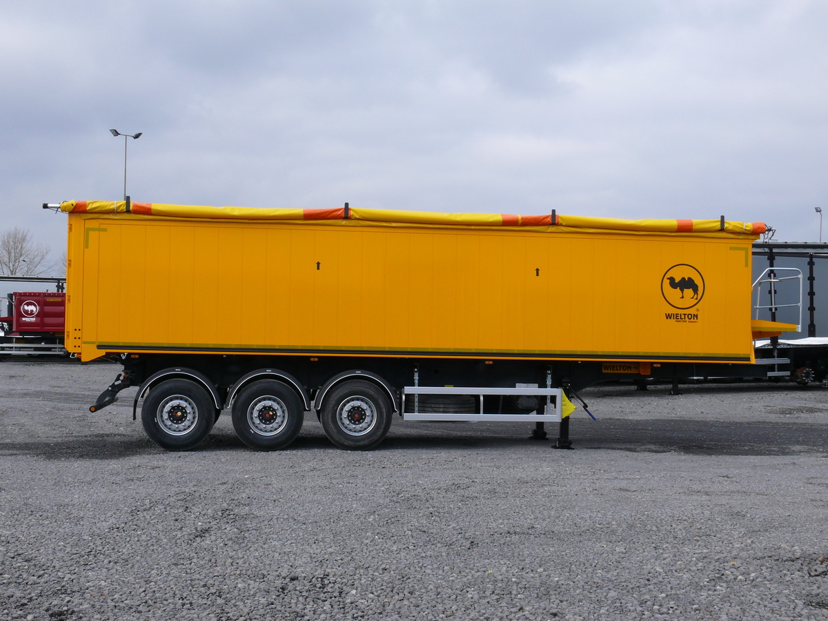 Самосвальный алюминиевый полуприцеп собъемом кузова 52 м3, сечение кузова квадрат, под тягач с высотой ССУ 1200 мм, 3 оси SAF - 9 тон, передняя подъемная ось, сзади клапан-ворота, кузов выполнен из листового алюминия и профилей, пол толщиной 5 мм, гидроцилиндр BINOTTO