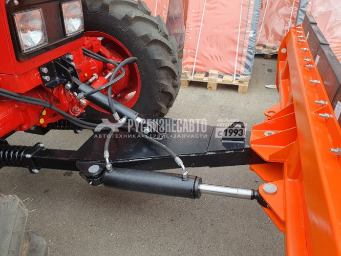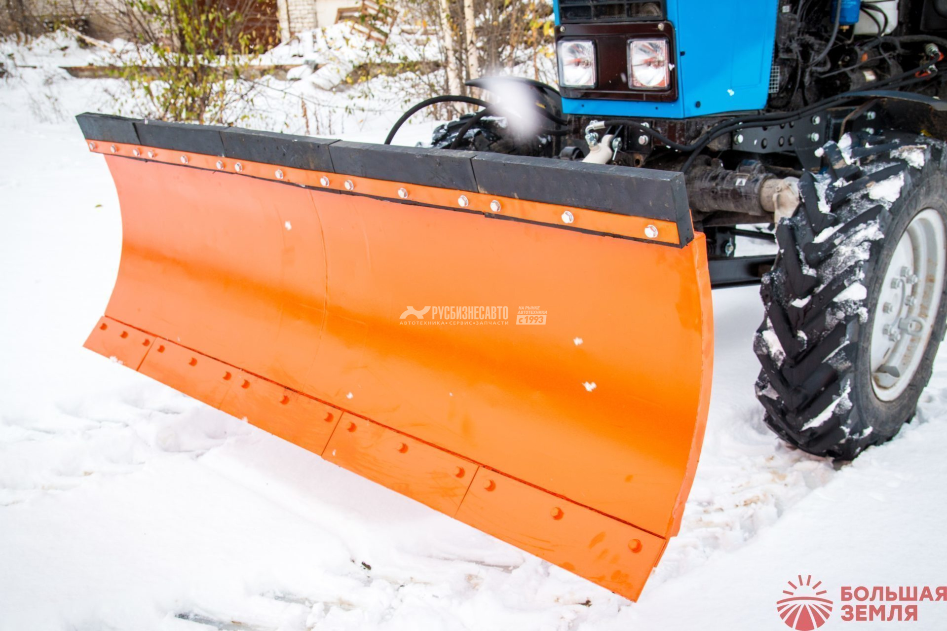 Усиленная лопата изготавливается из 5-ти миллиметровой стали и снабжена рёбрами жёсткости. А специальный компенсационный узел смягчает удар при наезде на препятствие.